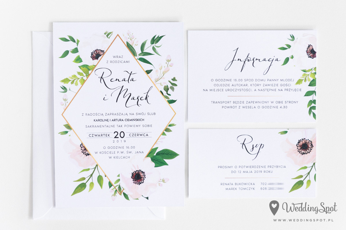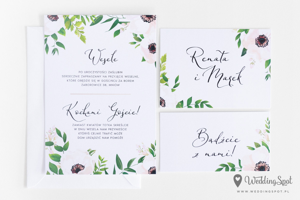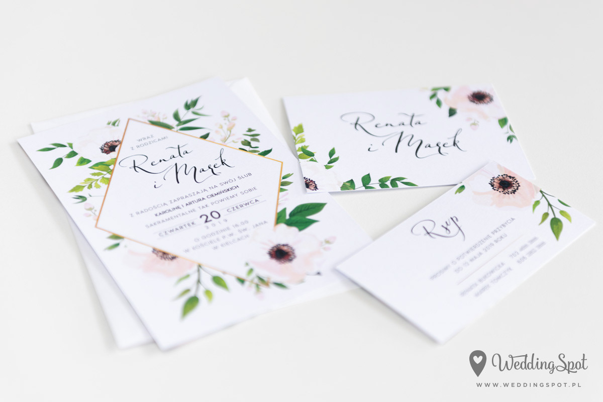 6,20 zł (od 176 szt.) 6,80 zł (101-175 szt.) 7,10 zł (76-100 szt.) 7,40 zł (50-75 szt.) W cenie: zaproszenie, karta RSVP, koperta w wybranym kolorze, personalizacja nazwisk na zaproszeniach Dodatkowa karta np. Informacja: od 0,90 zł Naklejka na kopertę: od 0,60 zł Wymiary zaproszenia: 11 x 15,4 cm Wymiary karty RSVP: 11 x 7,7 cm Papier: DNS - klasa premium, o podwyższonym współczynniku białości, gramatura 300 g/m2 Istnieje możliwość modyfikacji wzoru oraz przesłania własnego tekstu do zaproszenia. Minimalne zamówienie: 50 sztuk Czas realizacji: do 10 dni roboczych