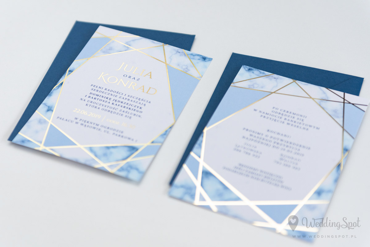 6,90 zł (od 176 szt.) 7,30 zł (101-175 szt.) 7,50 zł (76-100 szt.) 7,60 zł (50-75 szt.) W cenie: zaproszenie, koperta w wybranym kolorze, personalizacja nazwisk na zaproszeniach Opłata za wykonanie uszlachetnienia (niezależnie od ilości sztuk): 200 zł Złocona naklejka na kopertę: od 0,80 zł Wymiary zaproszenia: 11 x 15,4 cm Papier: biały matowy, gramatura 300 g/m2 Uszlachetnienie: obustronne złocenie, obustronna folia soft touch Istnieje możliwość modyfikacji wzoru oraz przesłania własnego tekstu do zaproszenia. Minimalne zamówienie: 50 sztuk Czas realizacji: do 10 dni roboczych