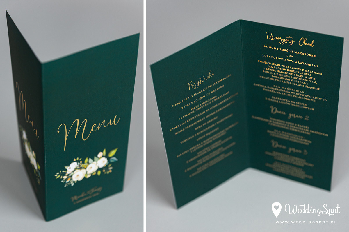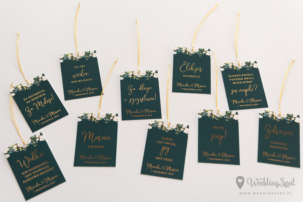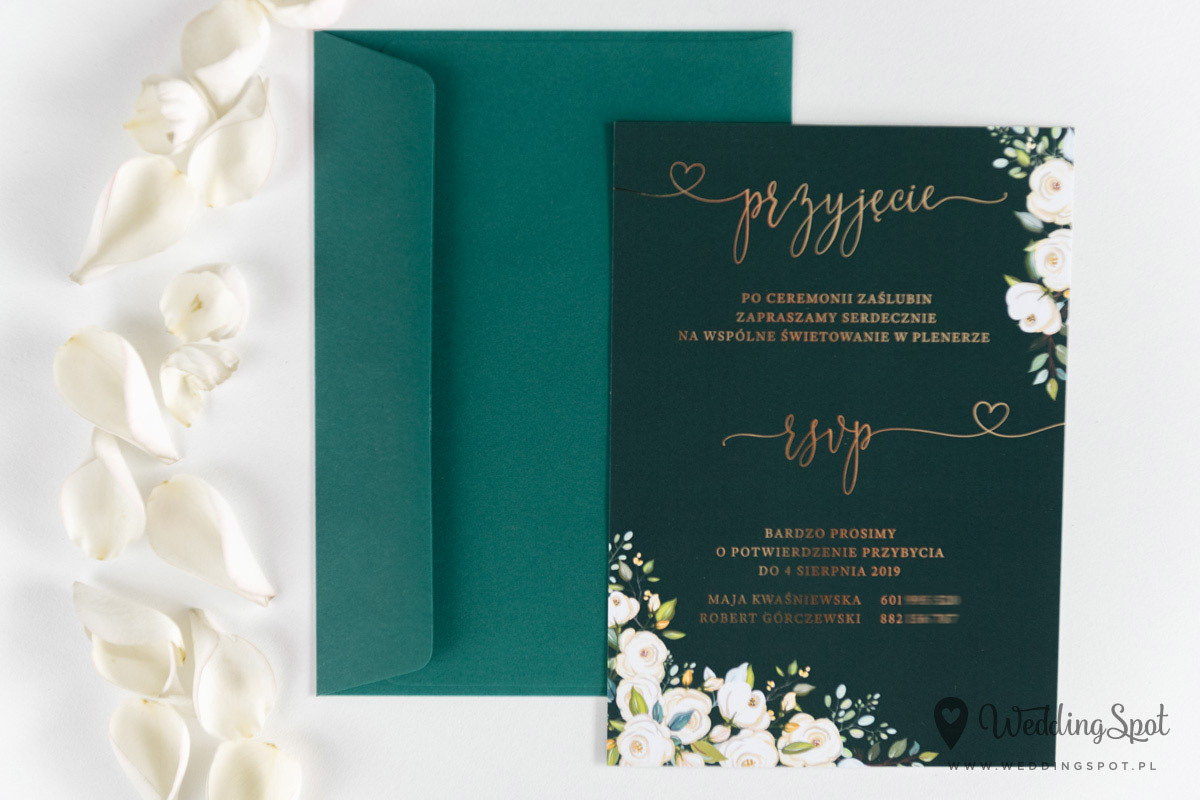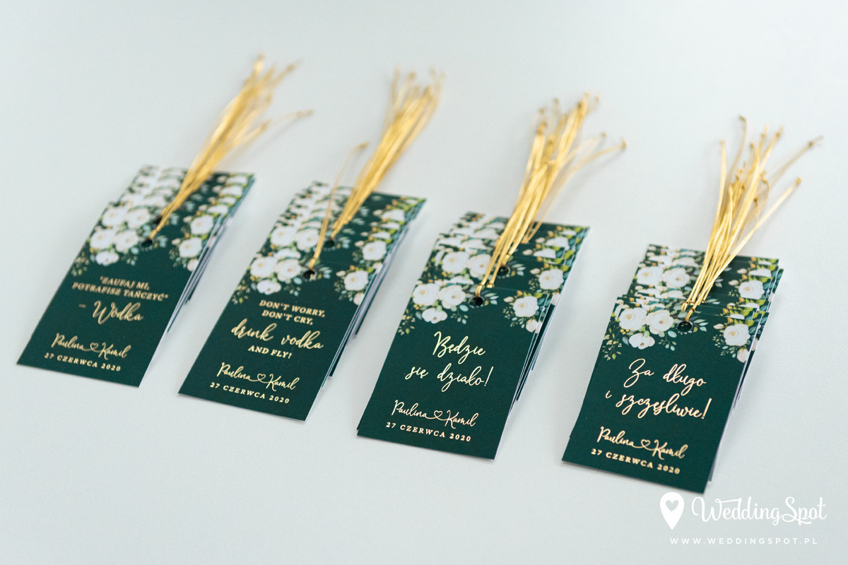 6,90 zł (od 176 szt.) 7,30 zł (101-175 szt.) 7,50 zł (76-100 szt.) 7,60 zł (50-75 szt.) W cenie: zaproszenie, koperta w wybranym kolorze, personalizacja nazwisk na zaproszeniach Opłata za wykonanie uszlachetnienia (niezależnie od ilości sztuk): 200 zł Złocona naklejka na kopertę: od 0,80 zł Wymiary zaproszenia: 11 x 15,4 cm Papier: biały matowy, gramatura 300 g/m2 Uszlachetnienie: obustronne złocenie, obustronna folia soft touch Istnieje możliwość modyfikacji wzoru oraz przesłania własnego tekstu do zaproszenia. Minimalne zamówienie: 50 sztuk Czas realizacji: do 10 dni roboczych