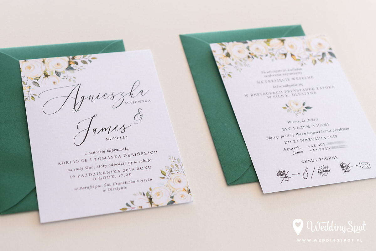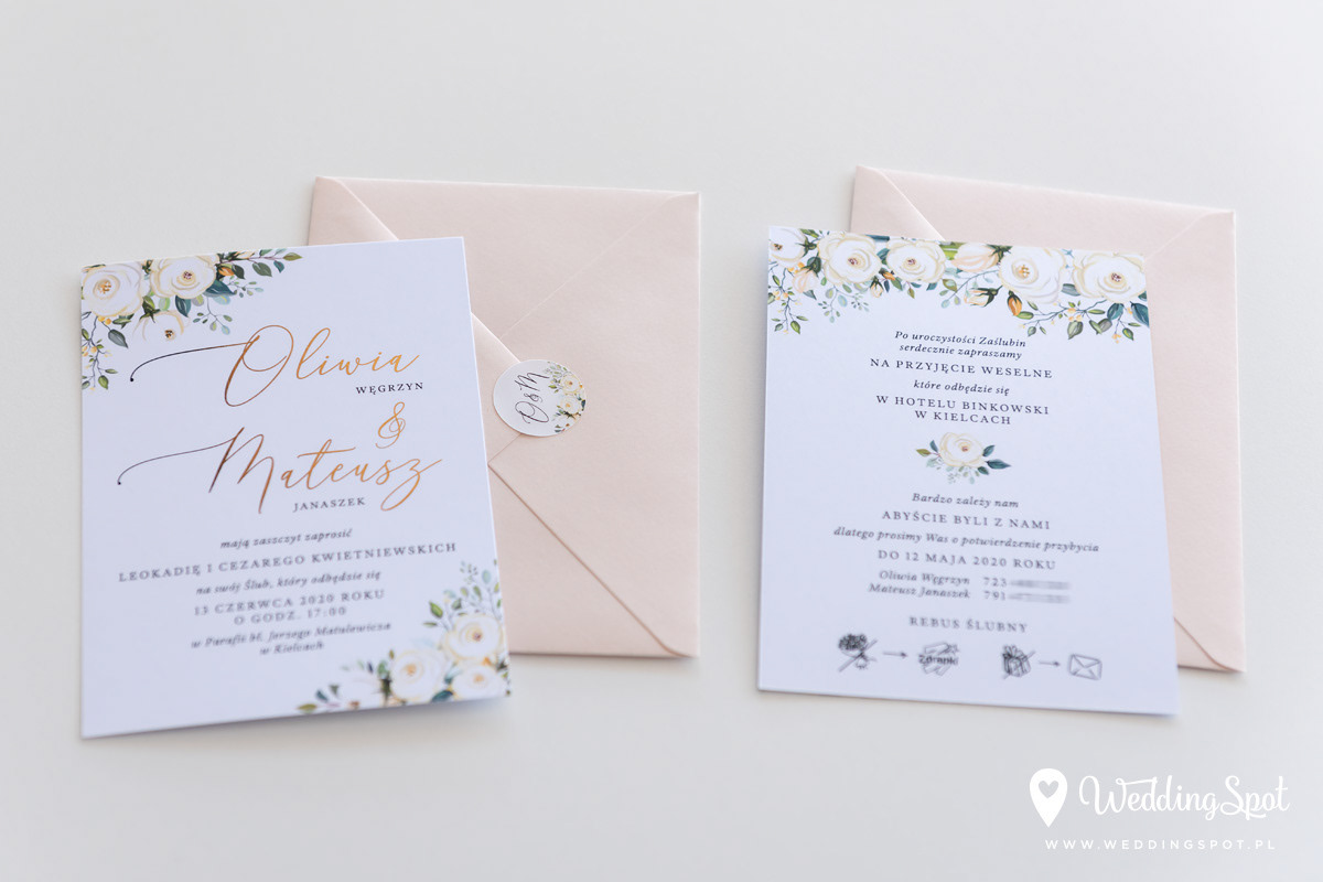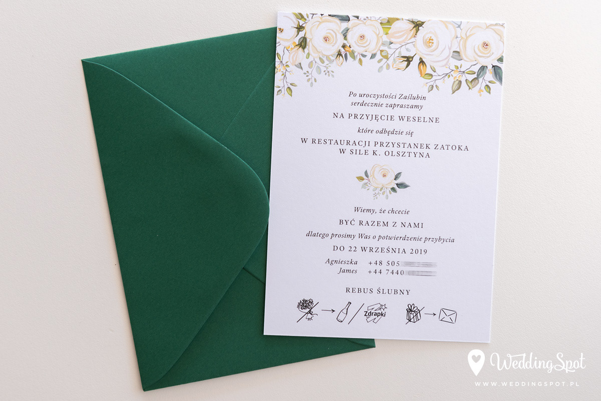 5,30 zł (od 176 szt.) 5,80 zł (101-175 szt.) 6,00 zł (76-100 szt.) 6,30 zł (50-75 szt.) W cenie: zaproszenie, koperta w wybranym kolorze, personalizacja nazwisk na zaproszeniach Naklejka na kopertę: od 0,60 zł Wymiary zaproszenia: 11 x 15,4 cm Papier: DNS - klasa premium, o podwyższonym współczynniku białości, gramatura 300 g/m2 Istnieje możliwość modyfikacji wzoru oraz przesłania własnego tekstu do zaproszenia. Minimalne zamówienie: 50 sztuk Czas realizacji: do 10 dni roboczych