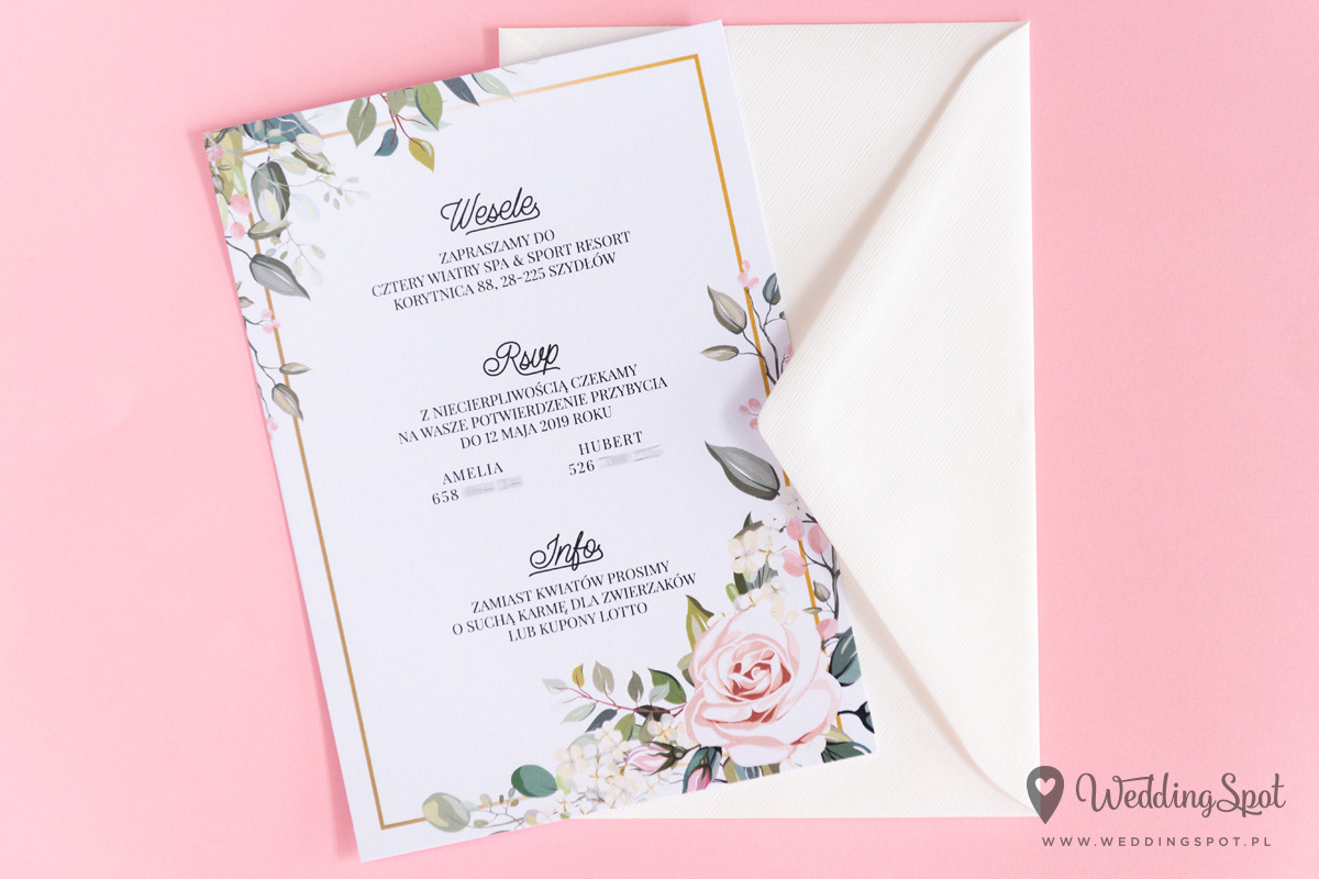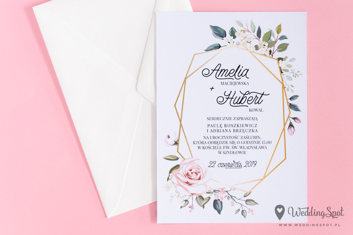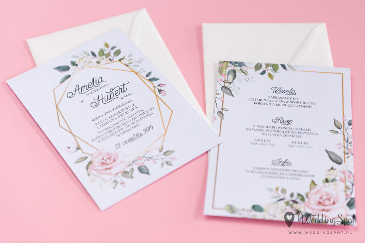 5,60 zł (od 176 szt.) 6,10 zł (101-175 szt.) 6,30 zł (76-100 szt.) 6,60 zł (50-75 szt.) W cenie: zaproszenie, koperta w wybranym kolorze, personalizacja nazwisk na zaproszeniach Naklejka na kopertę: od 0,60 zł Wymiary zaproszenia: 11,6 x 16,8 cm Papier: DNS - klasa premium, o podwyższonym współczynniku białości, gramatura 300 g/m2 Istnieje możliwość modyfikacji wzoru oraz przesłania własnego tekstu do zaproszenia. Minimalne zamówienie: 50 sztuk Czas realizacji: do 10 dni roboczych