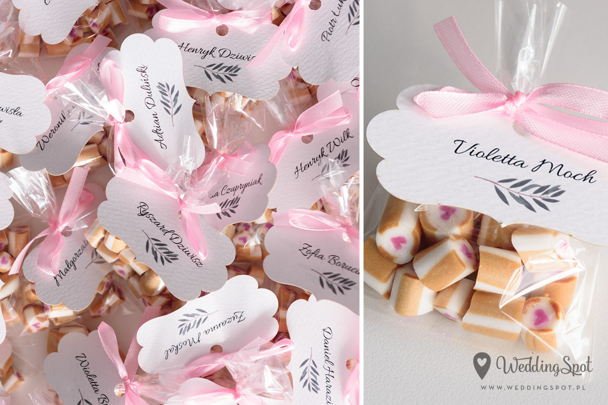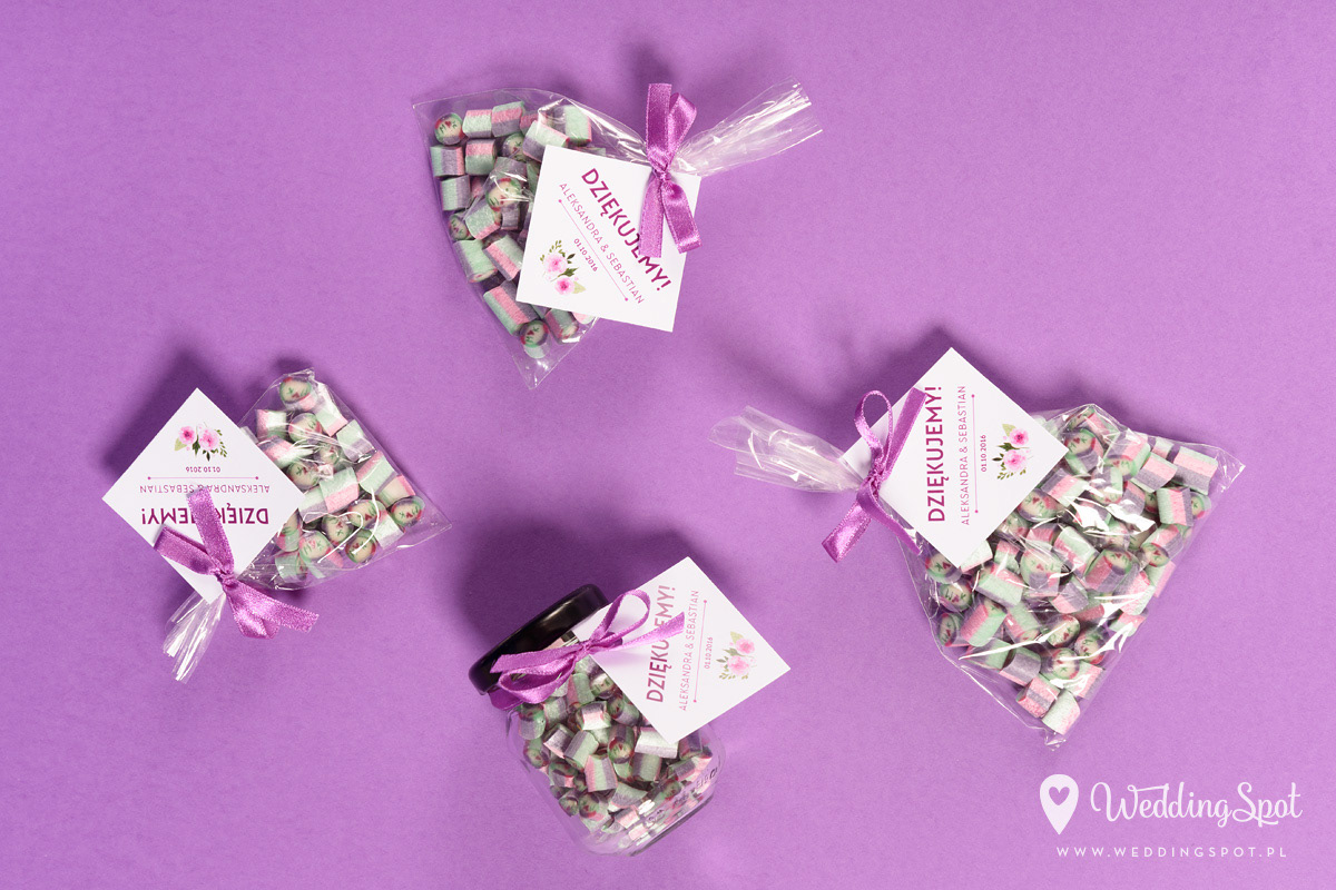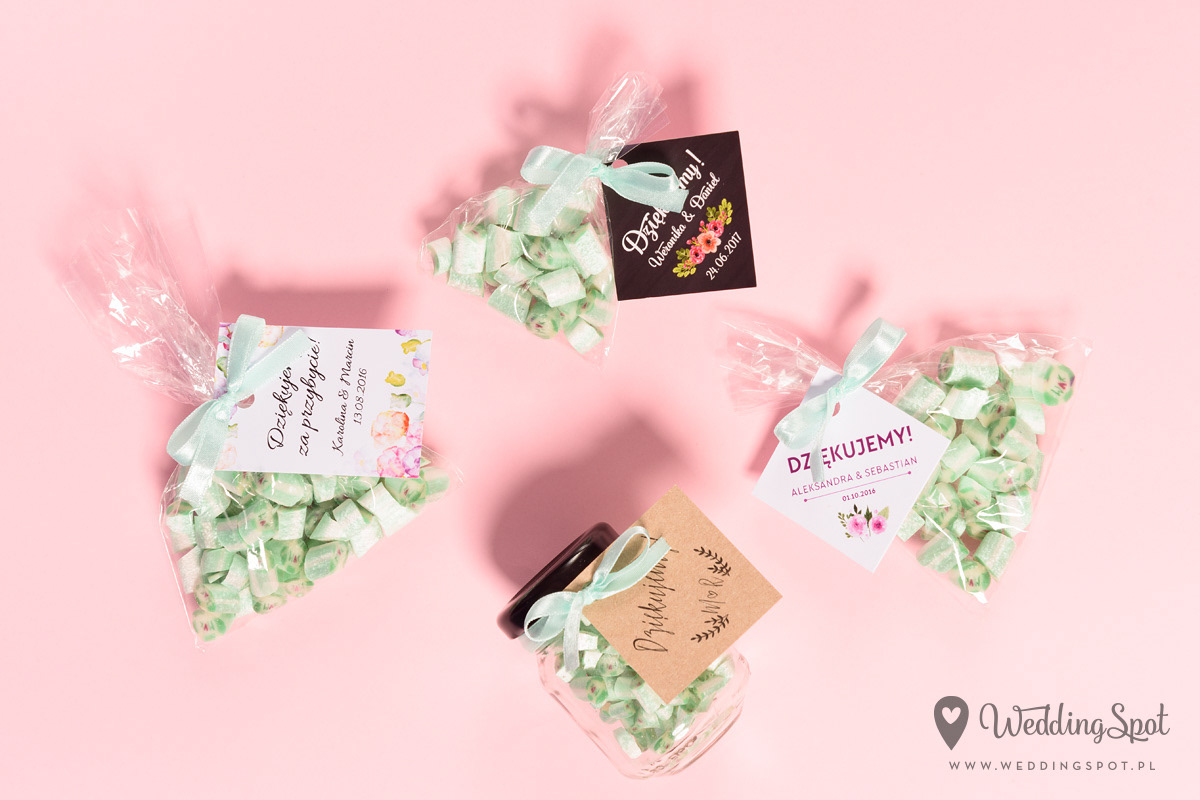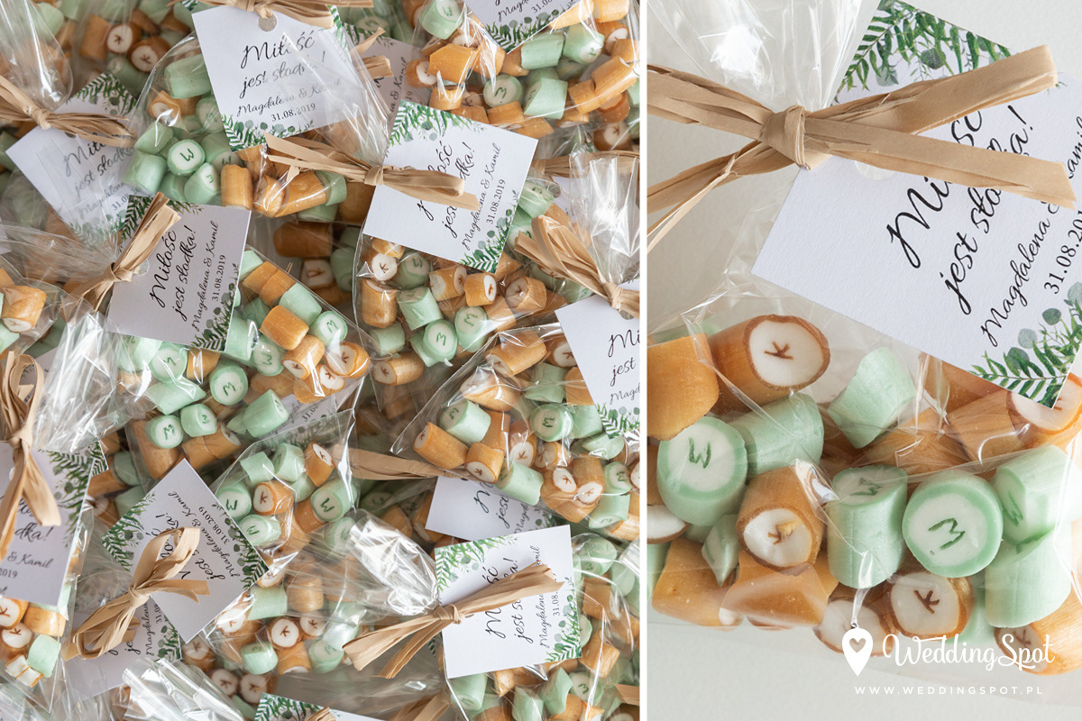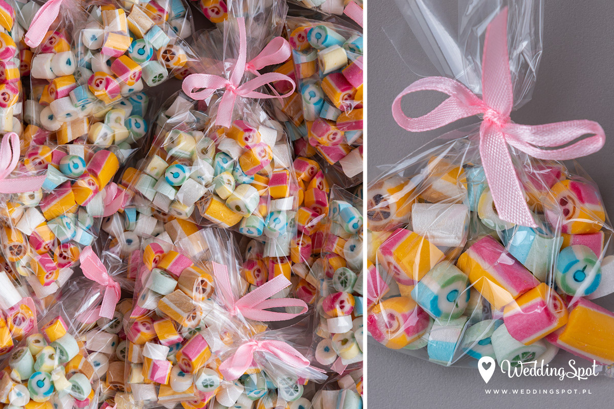 Pyszne karmelki to nowoczesny i zarazem niedrogi sposób na prezent dla gości! Dlaczego warto się na nie zdecydować? - są wyrabiane ręcznie, wyłącznie z naturalnych składników - nie zawierają sztucznych barwników, ani konserwantów - nie zawierają glutenu, ani laktozy - są dostępne w wielu smakach - oraz w dowolnej opcji kolorystycznej Ponadto można: - umieścić w nich inicjały - miksować smaki i kolory, wybrać np. zielone karmelki o smaku kawowym - zamówić je w dowolnej gramaturze, już od 40g - nawet z dostawą do domu :) CENA KARMELKÓW: 140 zł / kg np. torebeczka 40 g - 5,60 zł torebeczka 45 g - 6,30 zł torebeczka 50 g - 7,00 zł Polecamy dołączyć do karmelków indywidualnie projektowane bileciki z podziękowaniami lub winietki z nazwiskami gości. Ceny bilecików już od 1,50 zł / szt. Projekt gratis! Dostępne smaki (A-Z): ananas, anyż, arbuz, banan, cola, cytryna, grapefruit, guma balonowa, jabłko, jagoda, jagoda w śmietanie, kaktus, kawa, kiwi, limonka, lodowe ICE, malina, mango, mięta, mojito, oreo, owoce leśne, pomarańcza, poziomka, poziomka w śmietanie, rabarbar, róża, sernik, śmietanka, truskawka, truskawka w śmietanie, tutti-frutti, whisky&cola, winogrono, wiśnia