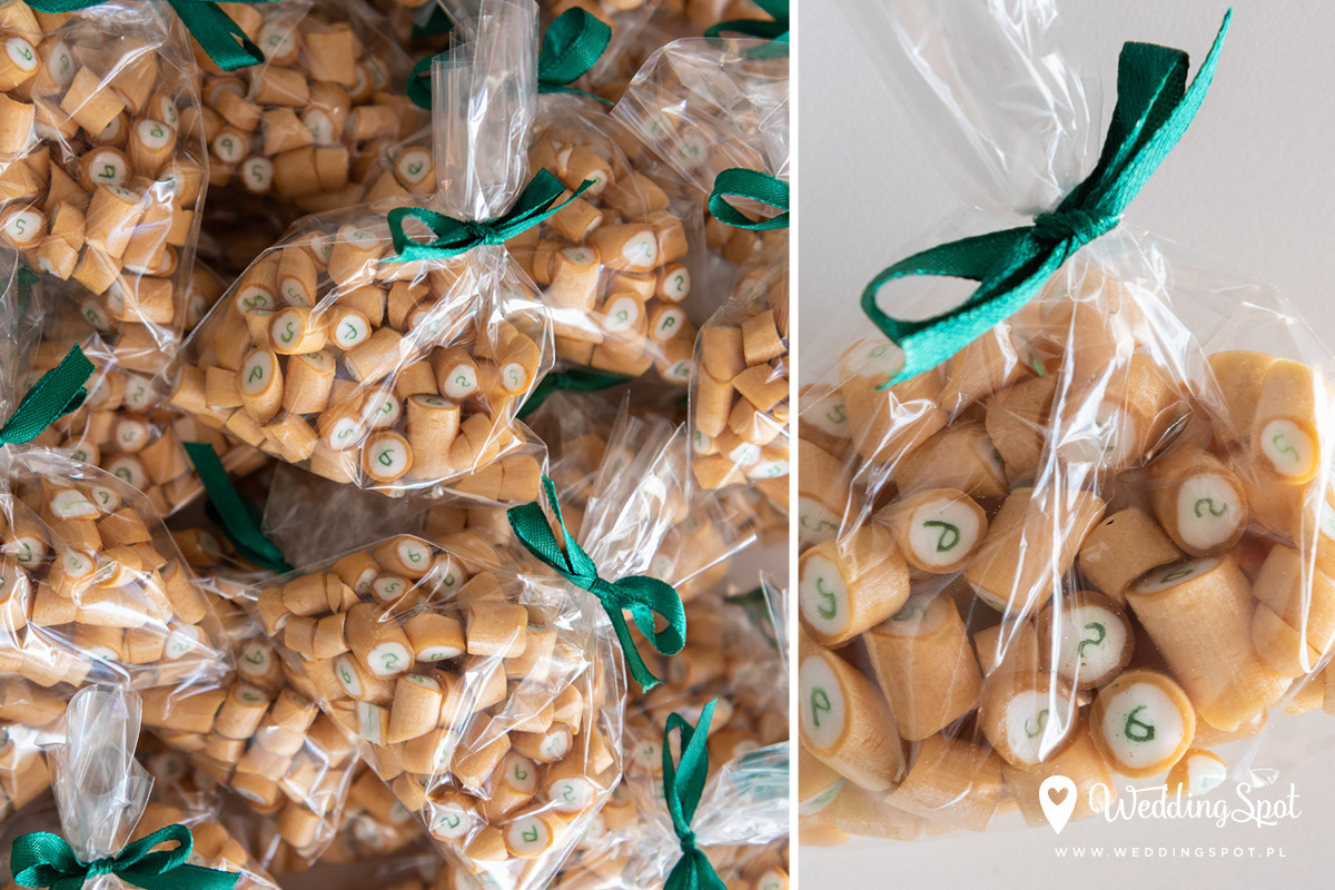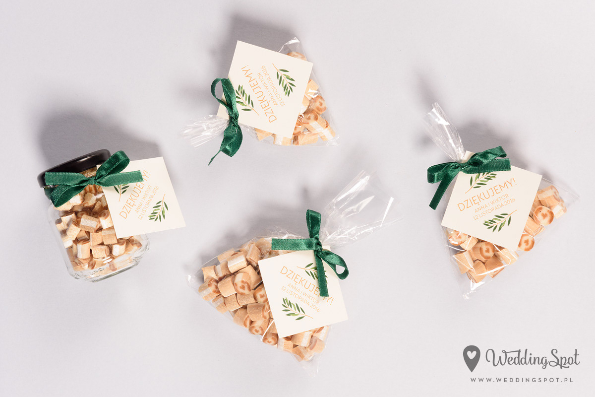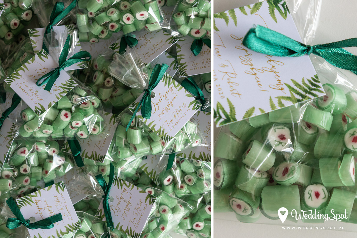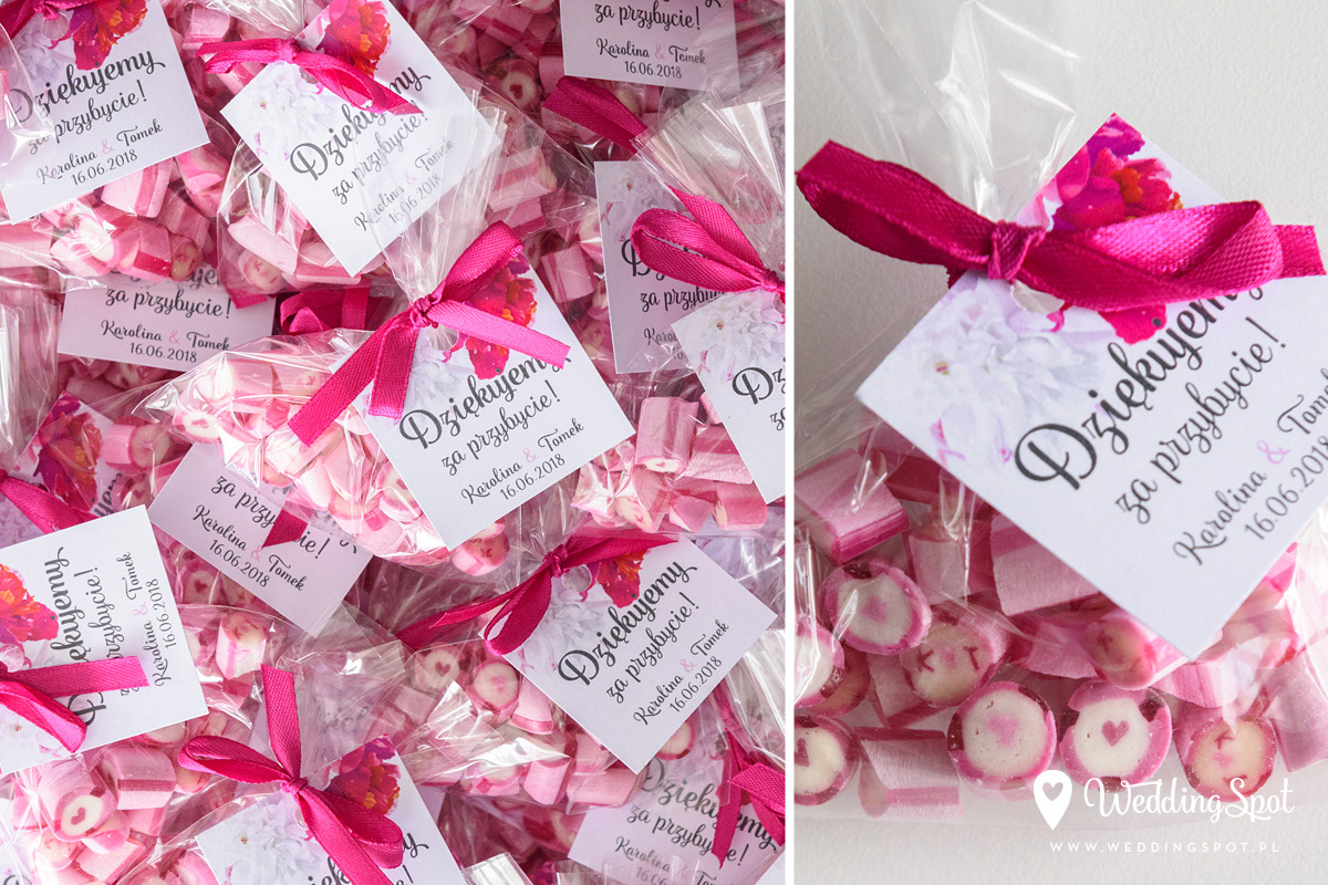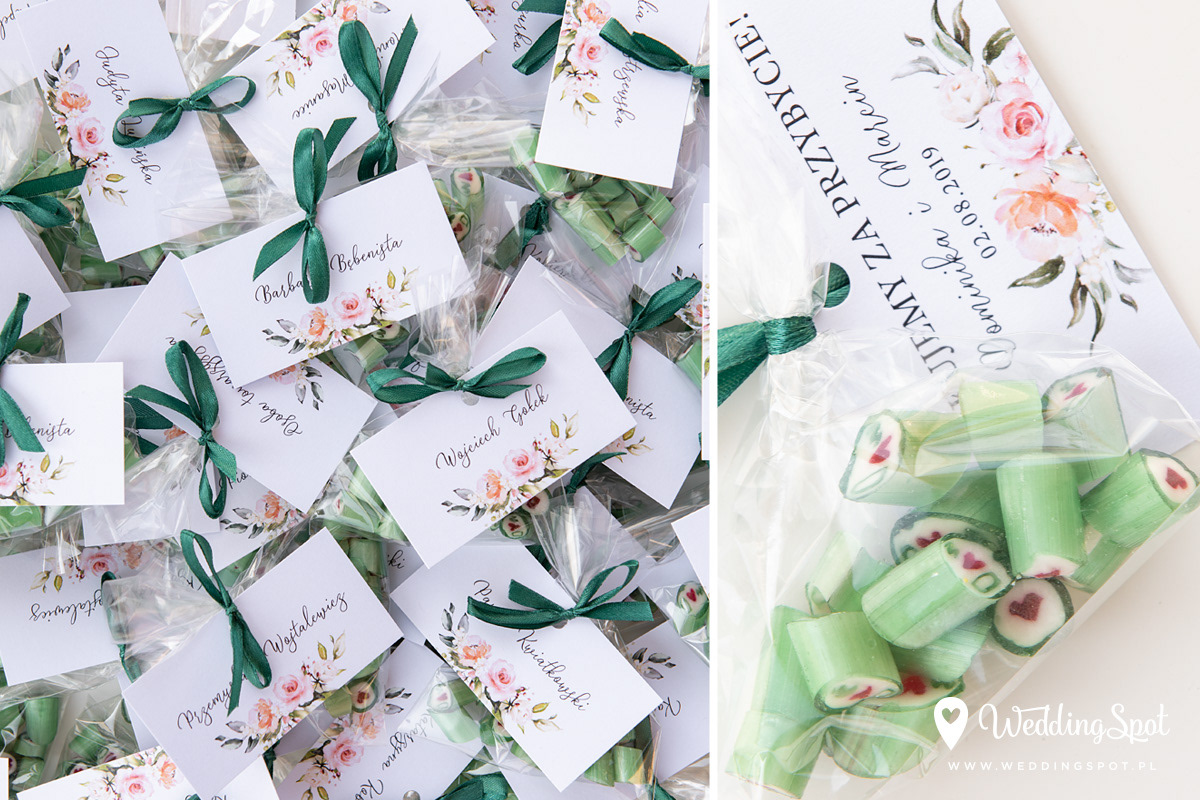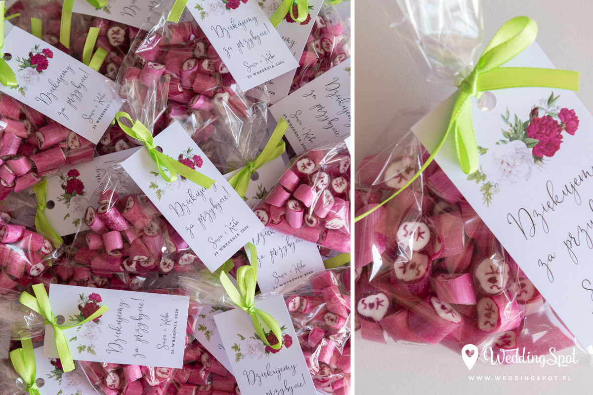 Pyszne karmelki to nowoczesny i zarazem niedrogi sposób na prezent dla gości! Dlaczego warto się na nie zdecydować? - są wyrabiane ręcznie, wyłącznie z naturalnych składników - nie zawierają sztucznych barwników, ani konserwantów - nie zawierają glutenu, ani laktozy - są dostępne w wielu smakach - oraz w dowolnej opcji kolorystycznej Ponadto można: - umieścić w nich inicjały - miksować smaki i kolory, wybrać np. zielone karmelki o smaku kawowym - zamówić je w dowolnej gramaturze, już od 40g - nawet z dostawą do domu :) CENA KARMELKÓW: 140 zł / kg np. torebeczka 40 g - 5,60 zł torebeczka 45 g - 6,30 zł torebeczka 50 g - 7,00 zł Polecamy dołączyć do karmelków indywidualnie projektowane bileciki z podziękowaniami lub winietki z nazwiskami gości. Ceny bilecików już od 1,50 zł / szt. Projekt gratis! Dostępne smaki (A-Z): ananas, anyż, arbuz, banan, cola, cytryna, grapefruit, guma balonowa, jabłko, jagoda, jagoda w śmietanie, kaktus, kawa, kiwi, limonka, lodowe ICE, malina, mango, mięta, mojito, oreo, owoce leśne, pomarańcza, poziomka, poziomka w śmietanie, rabarbar, róża, sernik, śmietanka, truskawka, truskawka w śmietanie, tutti-frutti, whisky&cola, winogrono, wiśnia