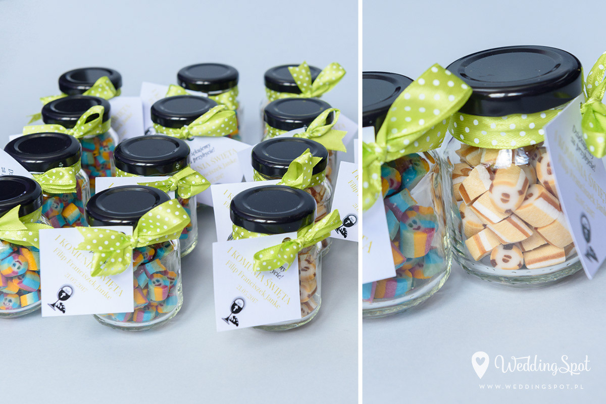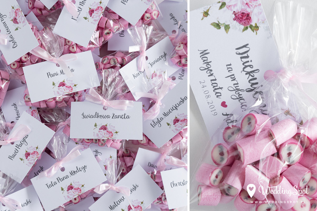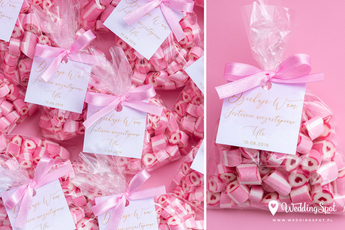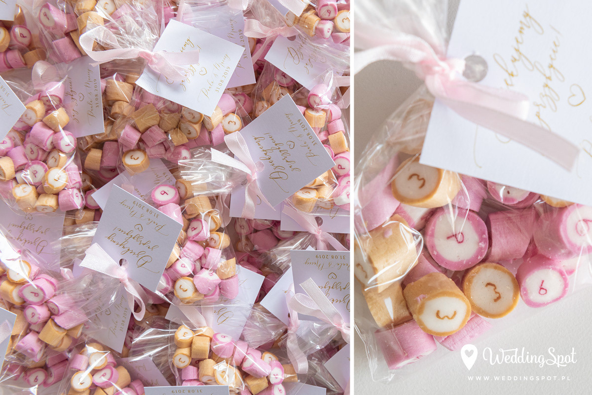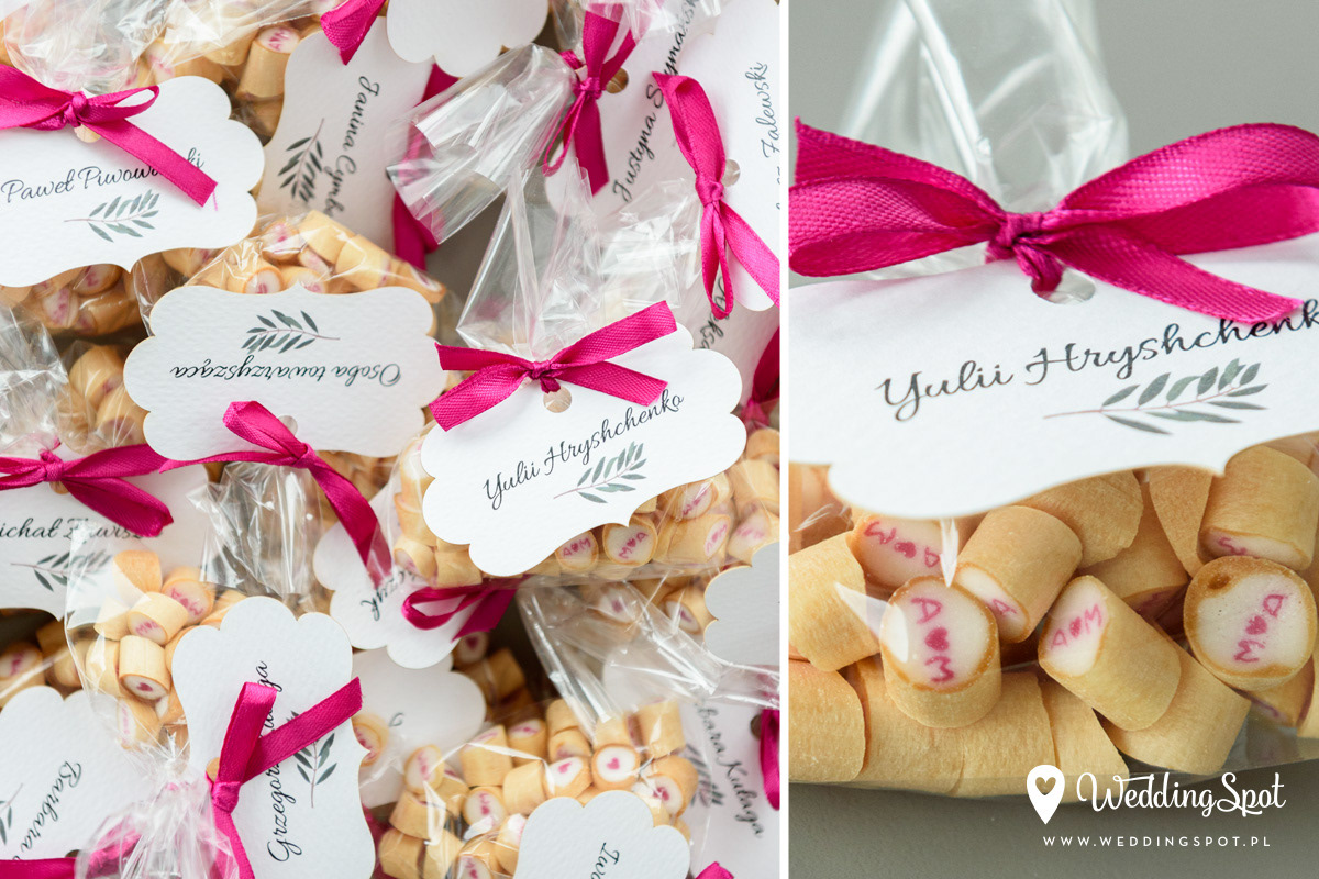 Pyszne karmelki to nowoczesny i zarazem niedrogi sposób na prezent dla gości! Dlaczego warto się na nie zdecydować? - są wyrabiane ręcznie, wyłącznie z naturalnych składników - nie zawierają sztucznych barwników, ani konserwantów - nie zawierają glutenu, ani laktozy - są dostępne w wielu smakach - oraz w dowolnej opcji kolorystycznej Ponadto można: - umieścić w nich inicjały - miksować smaki i kolory, wybrać np. zielone karmelki o smaku kawowym - zamówić je w dowolnej gramaturze, już od 40g - nawet z dostawą do domu :) CENA KARMELKÓW: 140 zł / kg np. torebeczka 40 g - 5,60 zł torebeczka 45 g - 6,30 zł torebeczka 50 g - 7,00 zł Polecamy dołączyć do karmelków indywidualnie projektowane bileciki z podziękowaniami lub winietki z nazwiskami gości. Ceny bilecików już od 1,50 zł / szt. Projekt gratis! Dostępne smaki (A-Z): ananas, anyż, arbuz, banan, cola, cytryna, grapefruit, guma balonowa, jabłko, jagoda, jagoda w śmietanie, kaktus, kawa, kiwi, limonka, lodowe ICE, malina, mango, mięta, mojito, oreo, owoce leśne, pomarańcza, poziomka, poziomka w śmietanie, rabarbar, róża, sernik, śmietanka, truskawka, truskawka w śmietanie, tutti-frutti, whisky&cola, winogrono, wiśnia