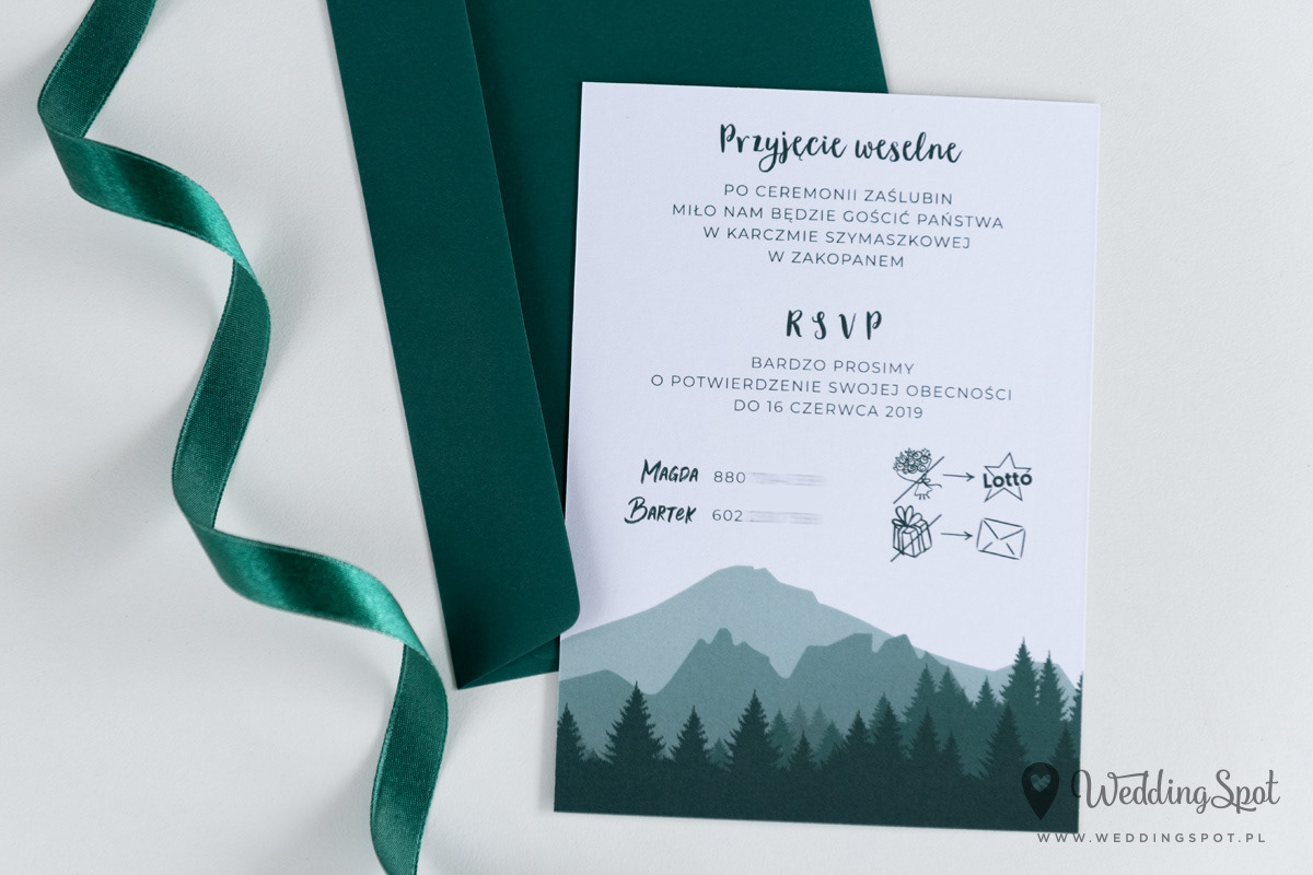 5,30 zł (od 176 szt.) 5,80 zł (101-175 szt.) 6,00 zł (76-100 szt.) 6,30 zł (50-75 szt.) W cenie: zaproszenie, koperta w wybranym kolorze, personalizacja nazwisk na zaproszeniach Naklejka na kopertę: od 0,60 zł Wymiary zaproszenia: 11 x 15,4 cm Papier: DNS - klasa premium, o podwyższonym współczynniku białości, gramatura 300 g/m2 Istnieje możliwość modyfikacji wzoru oraz przesłania własnego tekstu do zaproszenia. Minimalne zamówienie: 50 sztuk Czas realizacji: do 10 dni roboczych