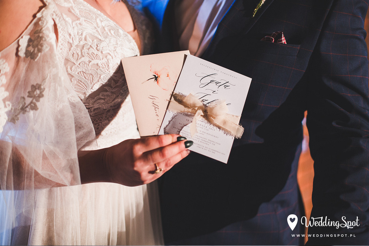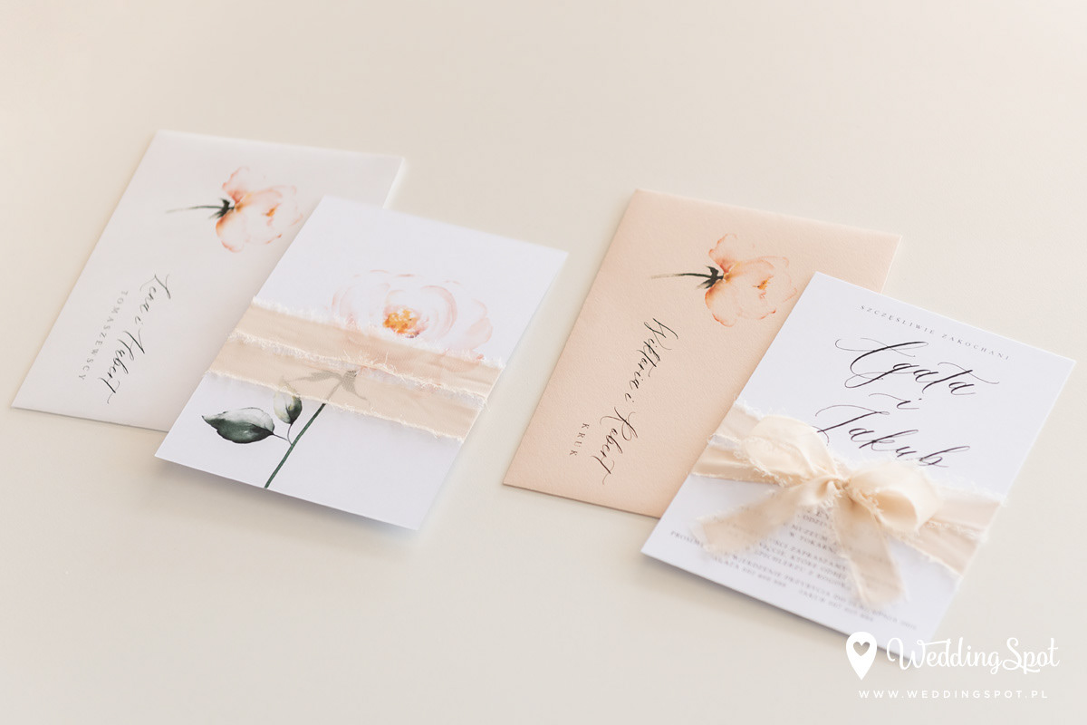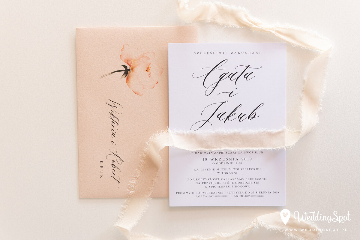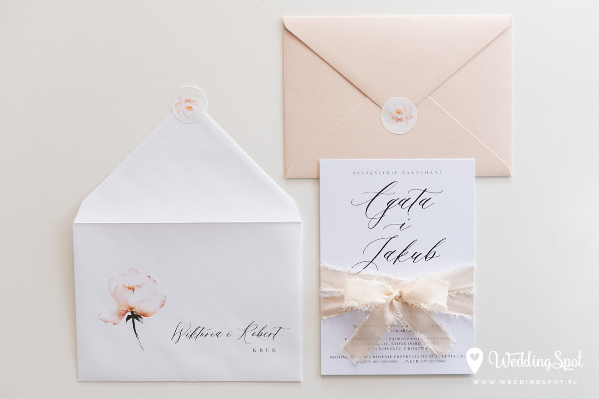 8,80 zł (od 176 szt.) 9,30 zł (101-175 szt.) 9,50 zł (76-100 szt.) 9,70 zł (50-75 szt.) W cenie: zaproszenie, ręcznie rwana szyfonowa wstążka, koperta w wybranym kolorze, personalizacja nazwisk na zaproszeniach Naklejka na zamknięcie koperty: od 0,60 zł Personalizacja koperty: 2 zł Wymiary zaproszenia: 11 x 15,4 cm Papier: DNS - klasa premium, o podwyższonym współczynniku białości, gramatura 300 g/m2 Istnieje możliwość modyfikacji wzoru oraz przesłania własnego tekstu do zaproszenia. Minimalne zamówienie: 50 sztuk Czas realizacji: do 10 dni roboczych Można również zamówić zaproszenie bez wstążki, w cenie: 5,30 zł (od 176 szt.) 5,80 zł (101-175 szt.) 6,00 zł (76-100 szt.) 6,30 zł (50-75 szt.)