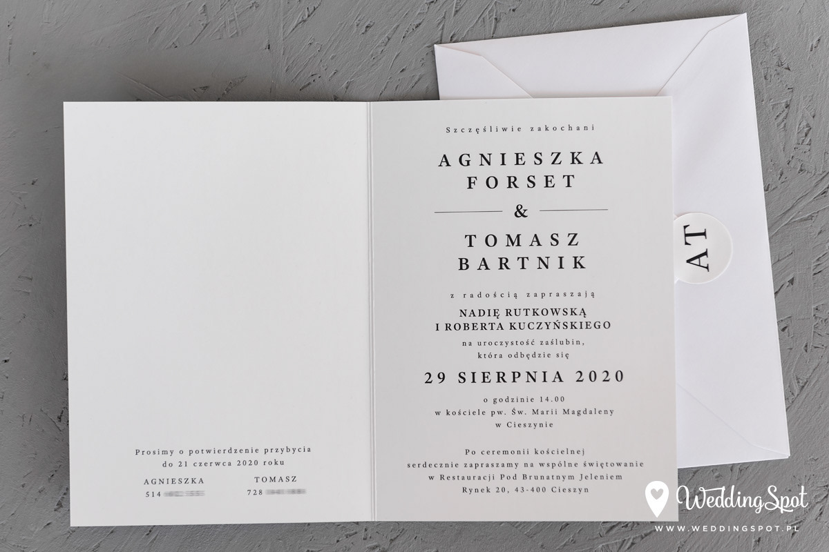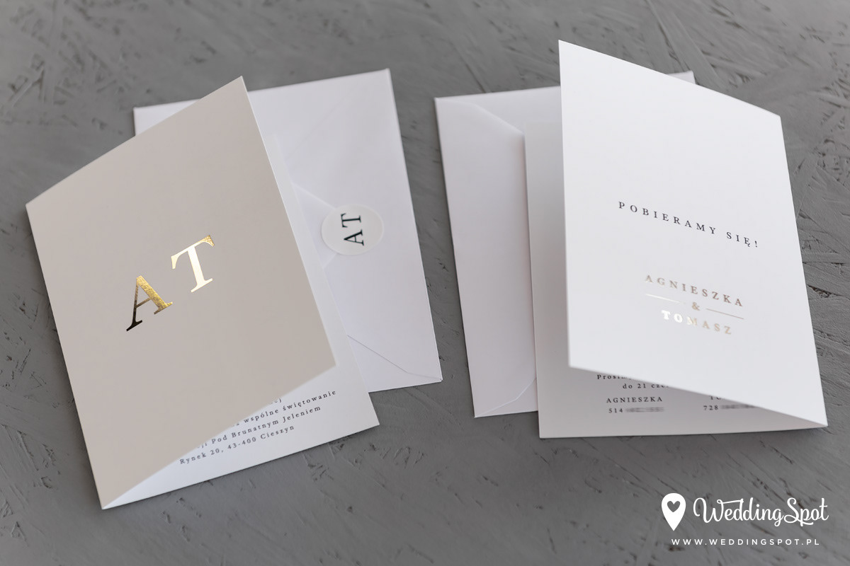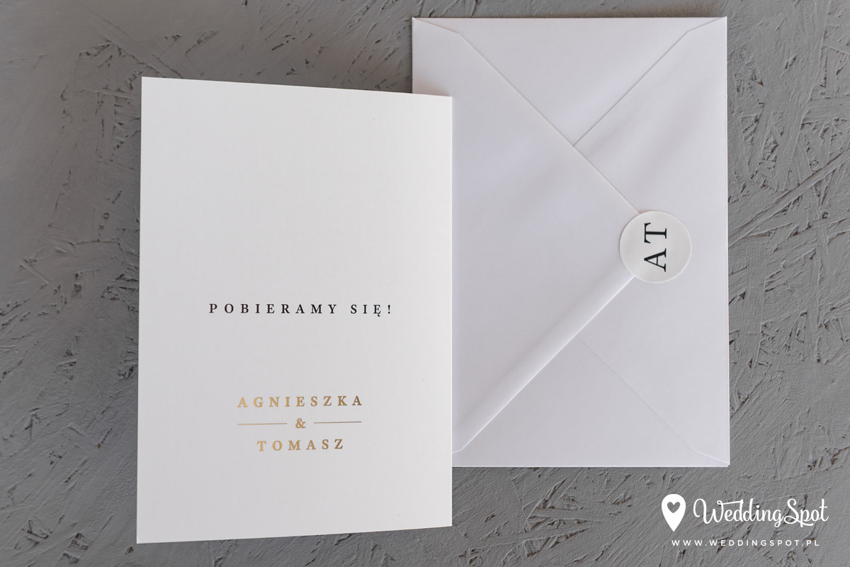 8,40 zł (od 176 szt.) 8,80 zł (101-175 szt.) 9,10 zł (76-100 szt.) 9,30 zł (50-75 szt.) W cenie: zaproszenie składane, koperta w wybranym kolorze, personalizacja nazwisk na zaproszeniach Opłata za wykonanie uszlachetnienia (niezależnie od ilości sztuk): 200 zł Naklejka na zamknięcie koperty: od 0,60 zł Wymiary zaproszenia: 11 x 15,4 cm (po złożeniu) Papier: biały matowy, gramatura 300 g/m2 Uszlachetnienie: jednostronne złocenie, obustronna folia soft touch Istnieje możliwość modyfikacji wzoru oraz przesłania własnego tekstu do zaproszenia. Minimalne zamówienie: 50 sztuk Czas realizacji: do 10 dni roboczych