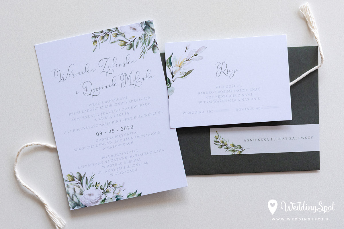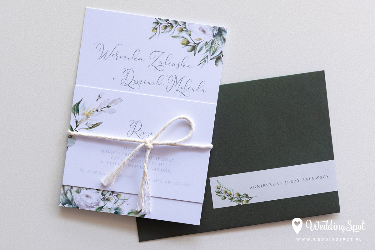 6,90 zł (od 176 szt.) 7,50 zł (101-175 szt.) 7,80 zł (76-100 szt.) 8,10 zł (50-75 szt.) W cenie: zaproszenie, karta RSVP, sznurek do samodzielnego zawiązania, koperta w wybranym kolorze, personalizacja nazwisk na zaproszeniach Naklejka na zamknięcie koperty: od 0,60 zł Spersonalizowana naklejka na kopertę: od 1,50 zł Wymiary zaproszenia: 11 x 15,4 cm Wymiary karty RSVP: 11 x 7,7 cm Papier: DNS - klasa premium, o podwyższonym współczynniku białości, gramatura 300 g/m2 Istnieje możliwość modyfikacji wzoru oraz przesłania własnego tekstu do zaproszenia. Minimalne zamówienie: 50 sztuk Czas realizacji: do 10 dni roboczych