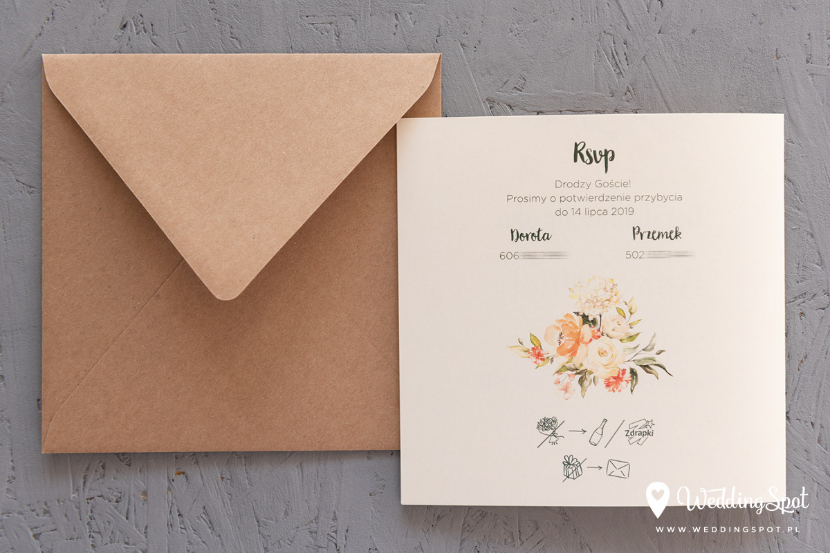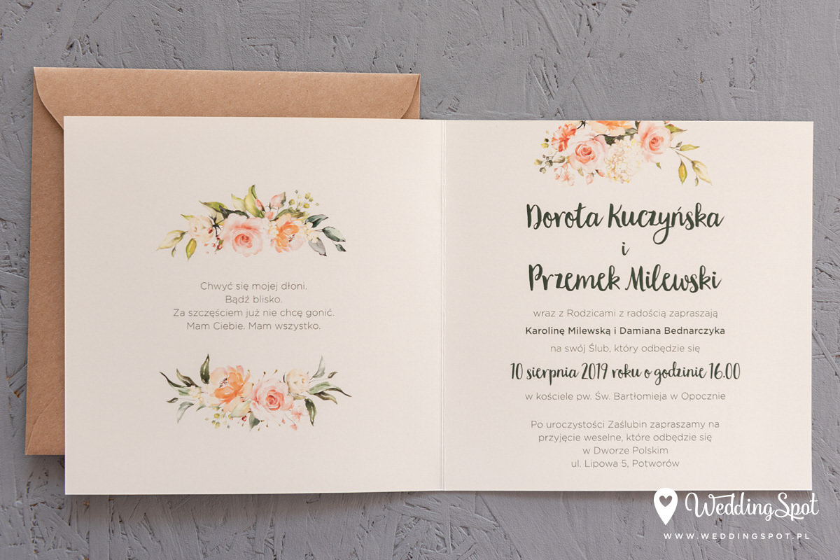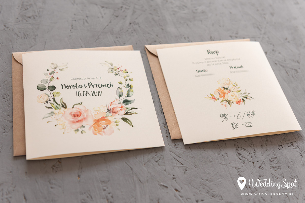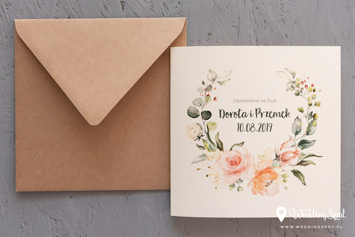 6,50 zł (od 176 szt.) 6,90 zł (101-175 szt.) 7,20 zł (76-100 szt.) 7,40 zł (50-75 szt.) W cenie: zaproszenie składane, koperta w wybranym kolorze, personalizacja nazwisk na zaproszeniach Naklejka na zamknięcie koperty: od 0,60 zł Wymiary zaproszenia: 14,6 x 14,6 cm (po złożeniu) Papier: DCP Ivory - satynowany papier w kolorze kości słoniowej o wyjątkowo wysokiej jakości, gramatura 300 g/m2 Istnieje możliwość modyfikacji wzoru oraz przesłania własnego tekstu do zaproszenia. Minimalne zamówienie: 50 sztuk Czas realizacji: do 10 dni roboczych Zaproszenie można zamówić także na papierze białym (DNS - klasa premium, o podwyższonym współczynniku białości, gramatura 300 g/m2) w poniższych cenach: 6,00 zł (od 176 szt.) 6,40 zł (101-175 szt.) 6,70 zł (76-100 szt.) 6,90 zł (50-75 szt.)